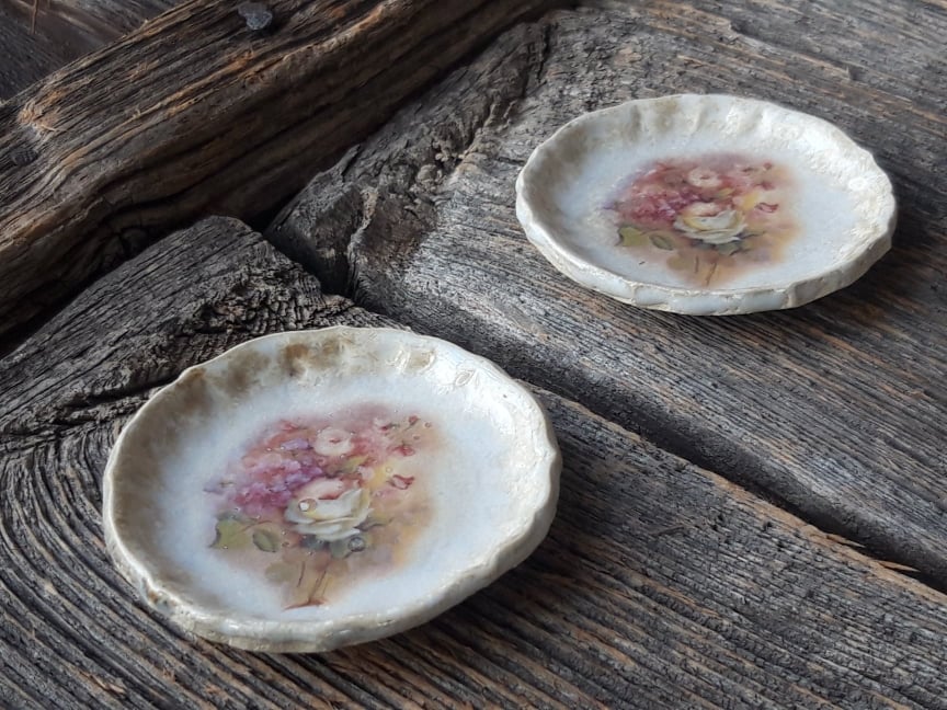 Roosimustriga valge alus teepakile, teesõelale, teeküünlale või näiteks paarile sõrmusele.